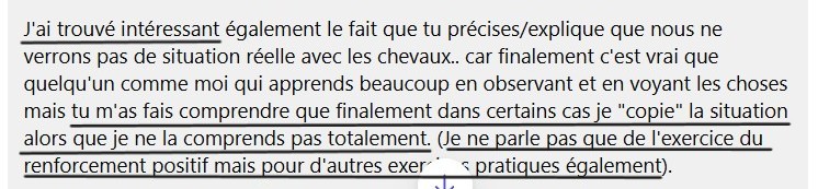 Résultat visible avant la fin de la formation pour ce cheval gourmand